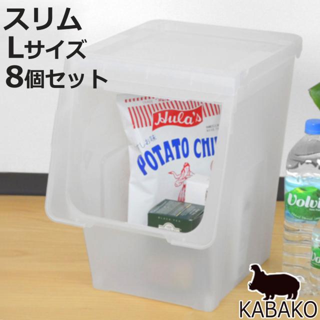 収納ボックス 前開き KABAKO カバコ スリム L 8個セット ( 幅30×奥行42×高さ41cm 収納ケース 半透明 日本製 収納 衣装ケース おもちゃ箱 クローゼット収納 積み重ね フタ付き 洗面所 キッチン ストッカー プラスチック フラップ )