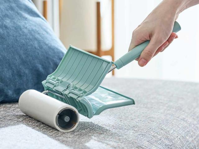 洋服や絨毯、ソファも片手でサッと掃除できる一体型粘着ローラーです。カバーを開けるだけで使用でき、ローラーをケースから取り出す手間もなく手軽です。