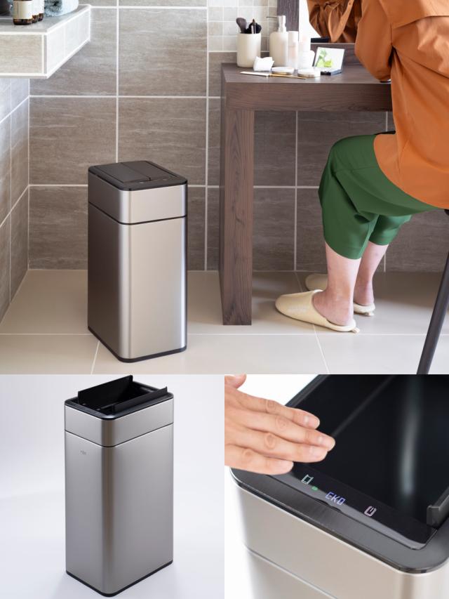 EKO ゴミ箱 35L ファントムプロセンサービン センサー式 ( ごみ箱 35リットル 自動開閉 センサー 幅24cm スリム ふた付き 分別 電池式 1年保証付き キッチン インナーバケツ付き ステンレス おしゃれ イケーオー )