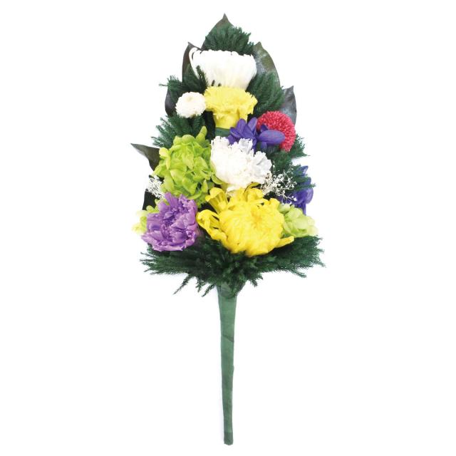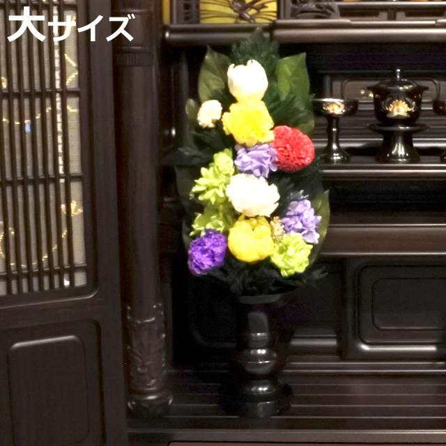 清々しい色合いとしっかりとした存在感が魅力の仏花の大サイズです。水やり不要のプリザーブドフラワーが美しさを長く保ち、故人とのつながりをそっと感じさせてくれます。