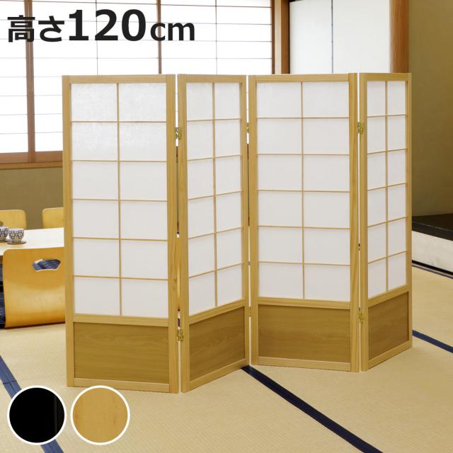 和風衝立 4連 折りたたみ 高さ120cm 天然木 完成品 不織布 ( 衝立 和風 目隠し パーテーション スクリーン 自立 間仕切り 仕切り パーティション パーティーション サロン オフィス 店舗 飲食店 事務所 四連 )