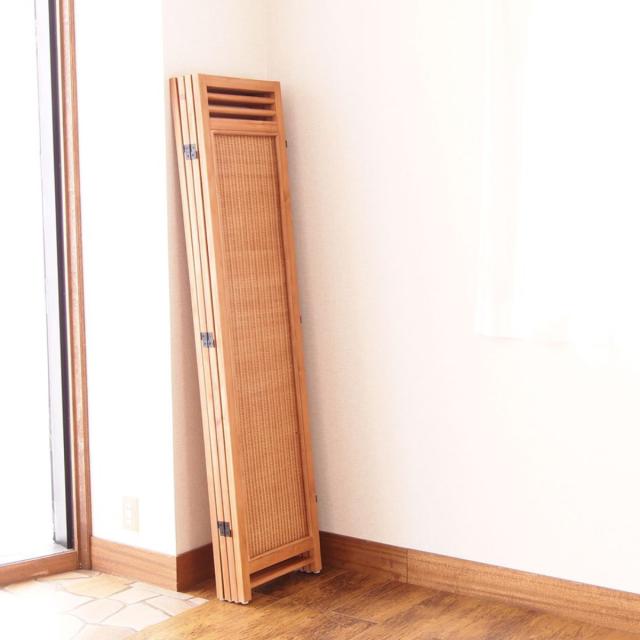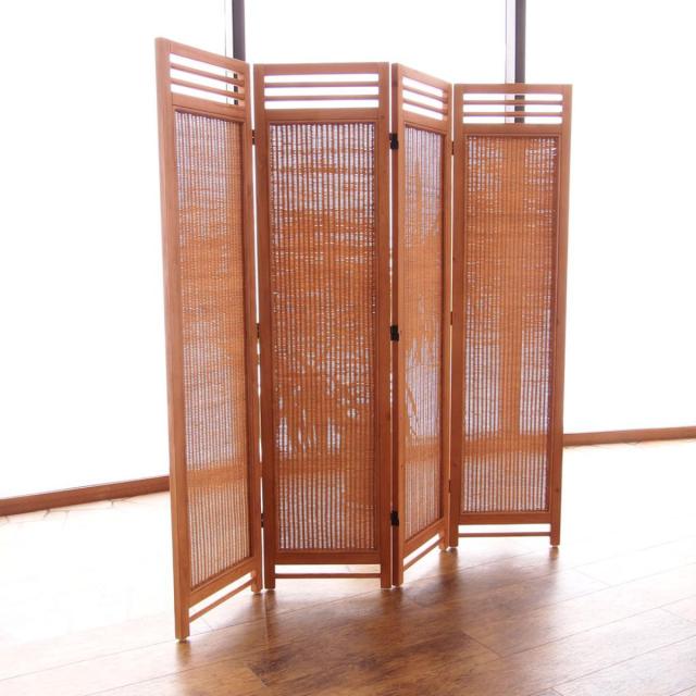 天然木のフレームにラタンの編み込みが美しいスクリーン 4連
