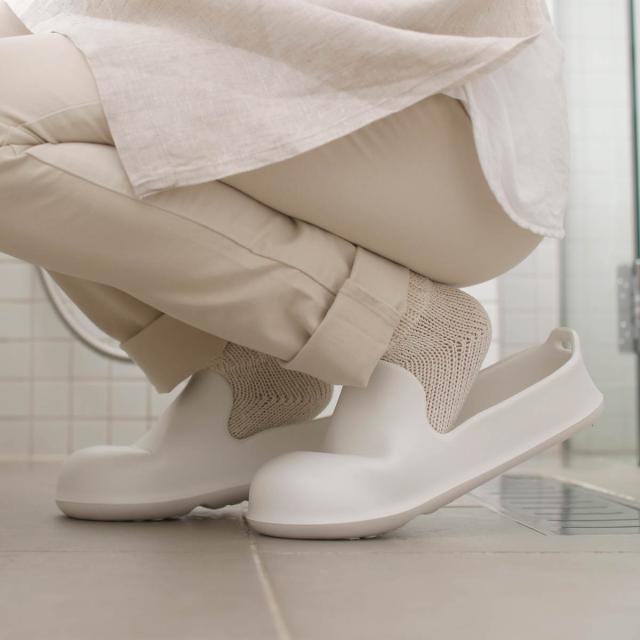 足を濡らさずにお掃除ができるのはもちろん、履きやすさも大事なバスシューズ。こちらのバスシューズは、やわらかく軽い履き心地で屈んだ時に曲がりやすい甲とソールのデザインなのでお掃除の時間を快適にしてくれます。