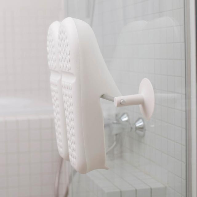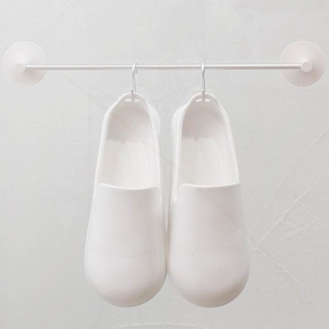 「掛ける、立てる、吊る」場所に合わせて3通りの収納ができる工夫がされています。どんな浴室でも収納場所に困らずに使用できるバスシューズです。