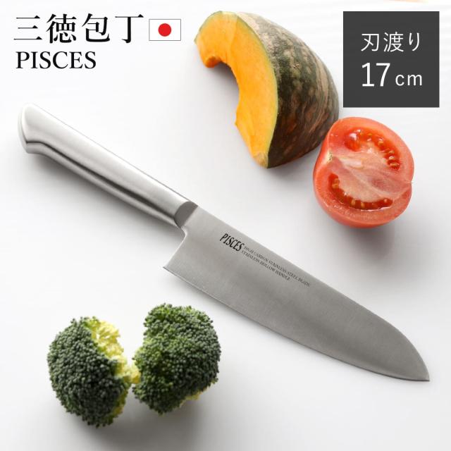 三徳包丁 17cm PISCES オールステンレス 日本製 ( 料理包丁 万能包丁 キッチンナイフ 文化包丁 モリブデン 17センチ 170mm 170ミリ 調理小物 調理道具 下ごしらえ用品 キッチングッズ キッチンツール 錆びにくい 切れ味抜群 )