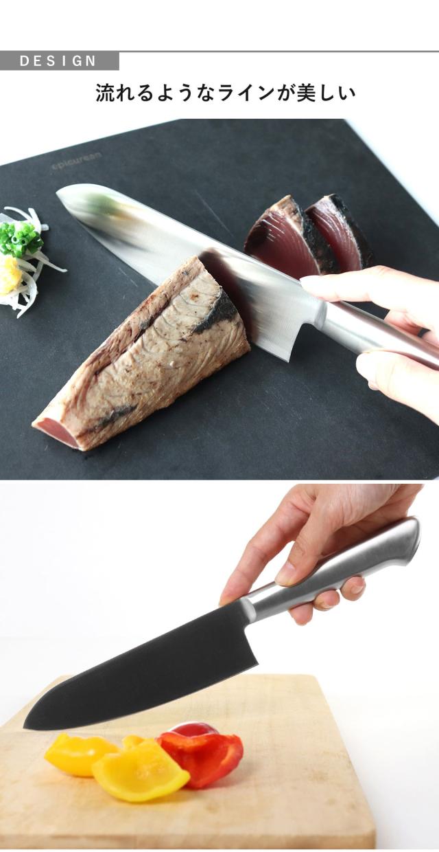 継ぎ目のない一体構造で、ハンドルから刀身への流れがスマートなステンレス製の包丁です。柄が抜けたりガタツキが起こったりすることもなく、丈夫に仕上げられています。