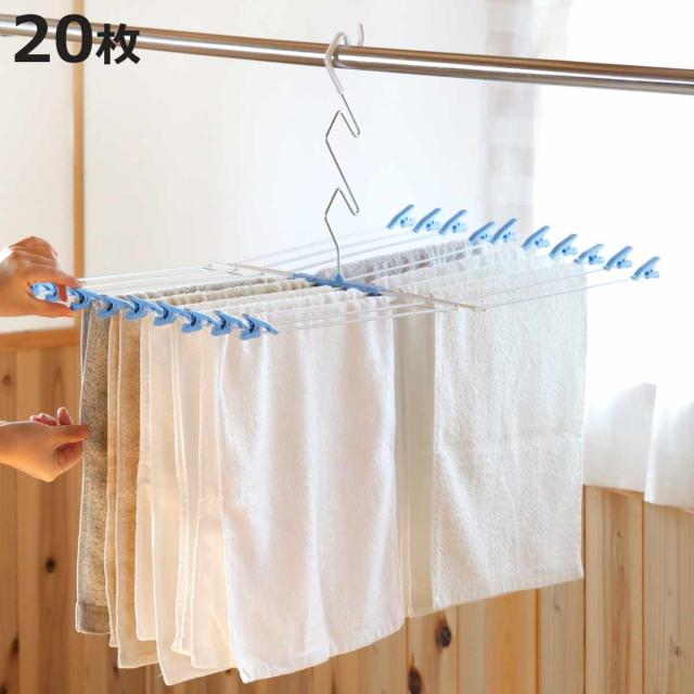 洗濯ハンガー タオルハンガー H&L ハイアンドロー 高さ3段階調節 20枚掛け ( タオル ハンガー タオル干し 高さ調節 3段階 20ピンチ クリップ付き 物干しハンガー 20枚 折りたたみ コンパクト 収納 )