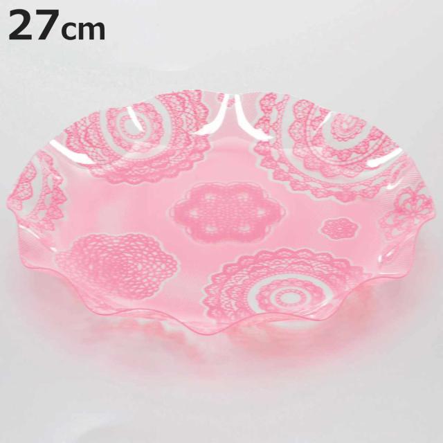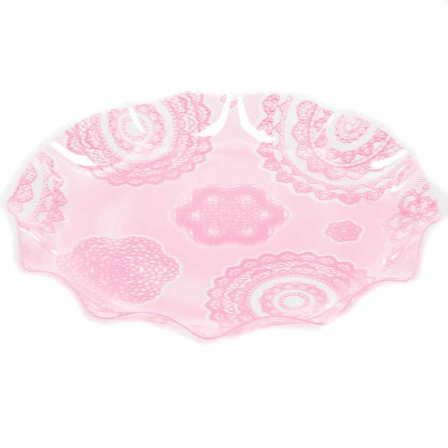 PETラウンドプレート レース アレンジDECO ( プレート お皿 菓子皿 スナックプレート 小物入れ 軽い 割れにくい 柄 軽食 スナック おやつ お菓子 透明感 おしゃれ レース柄 )