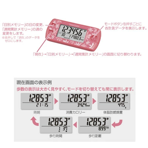 《 LH15235 LH15243 まんぽけい ほすうけい 健康 健康保持 カロリー計算 運動 散歩 ウォーキング ジョギング ランニング エクササイズ 小さめ 小さい 携帯用 軽い ボタン操作 総消費カロリー 総消費 体脂肪燃焼量 体脂肪 歩行距離 歩行時間 時間 大容量メモリー メモリー きろく 30日分 30週間分 シンプル しんぷる 簡単 カワイイ 可愛い 山佐 ヤマサ 花柄 フラワー柄 ピンク ぴんく 》