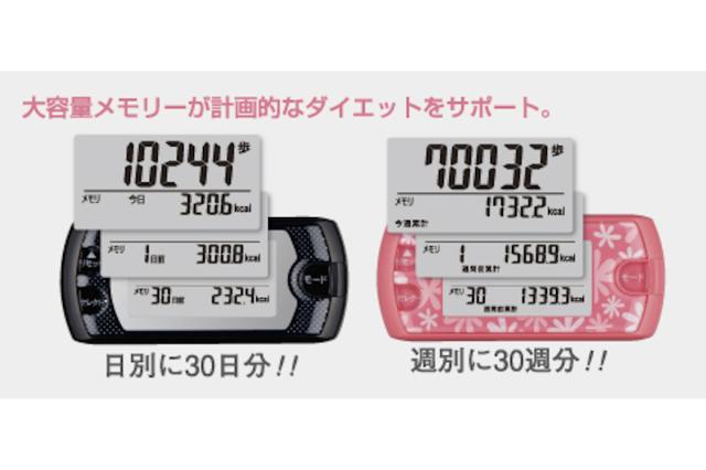 ![]() 消費カロリーも分かる | ![]() 歩数のみ確認したい方へ | ![]() 7日分メモリー付き |
