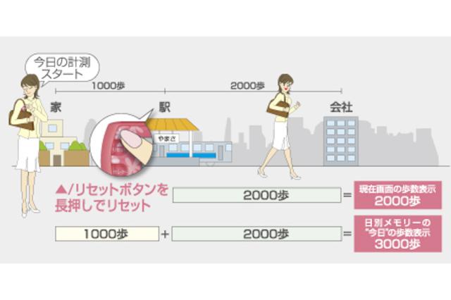 通勤時のみの歩数を知りたい時も、ウォーキングの間だけの歩数を知りたい時も、簡単な操作で計測出来ます。