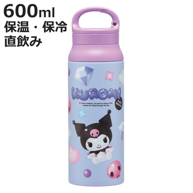 水筒 600ml カラビナハンドルステンレスボトル クロミぷっくりバルーン ( クロミ 直飲み 保温 保冷 ハンドル カラビナ ダイレクトボトル ボトル 子供 ステンレスボトル カラビナ付き ハンドル付き 持ち運び アウトドア )