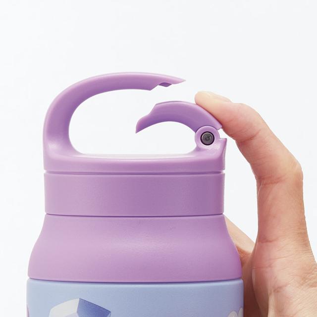 カラビナハンドル付きで持ち運びに便利な水筒
