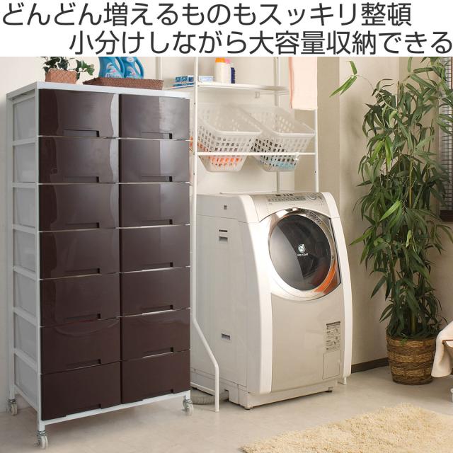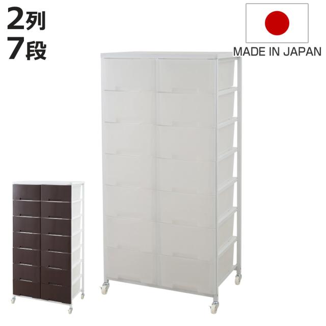 衣装ケース 大量収納プラスチックチェスト 2列7段 ( 幅69×奥行48×高さ144cm 収納ボックス 引き出し ハイタイプ 収納ケース チェスト 衣類収納 大容量 タンス キャスター付き リビング収納 クローゼット ランドリー 日本製 スリム )