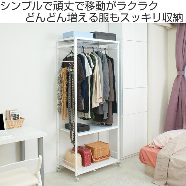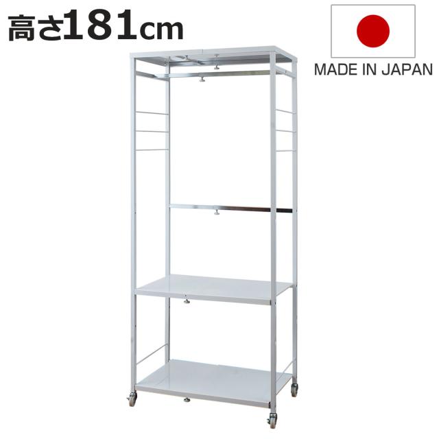 ハンガーラック 伸縮 高さ181cm スチール製 キャスター付き ( 洋服掛け ハンガー掛け パイプハンガー 幅66〜78cm 収納 衣類 コートハンガー 頑丈 日本製 衣類収納 ワードローブ 収納棚 洋服 小物掛け バッグ カバン ホワイト )