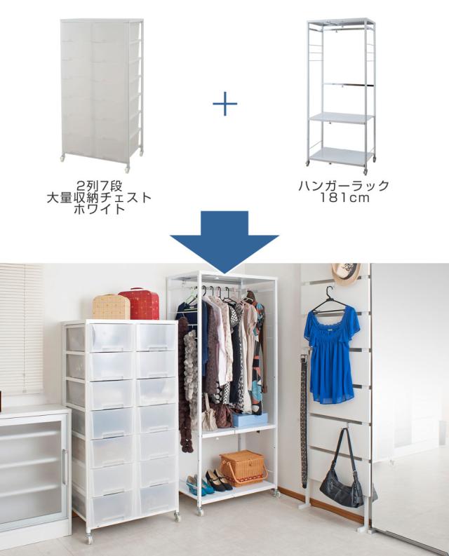 同シリーズの大量収納チェストやハンガーラックと組み合わせることで、お部屋の収納場所を思いのままにアレンジできます。