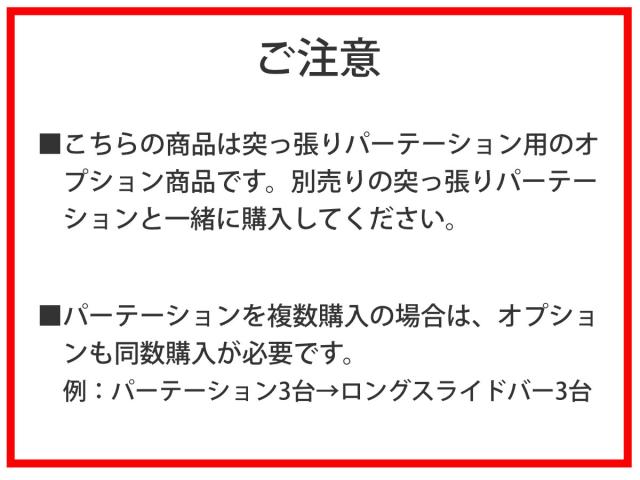 | 備考 | ※こちらはスライドバー交換オプションのページです。 ※別売りの突っ張りパーテーションと一緒に注文してください。 |