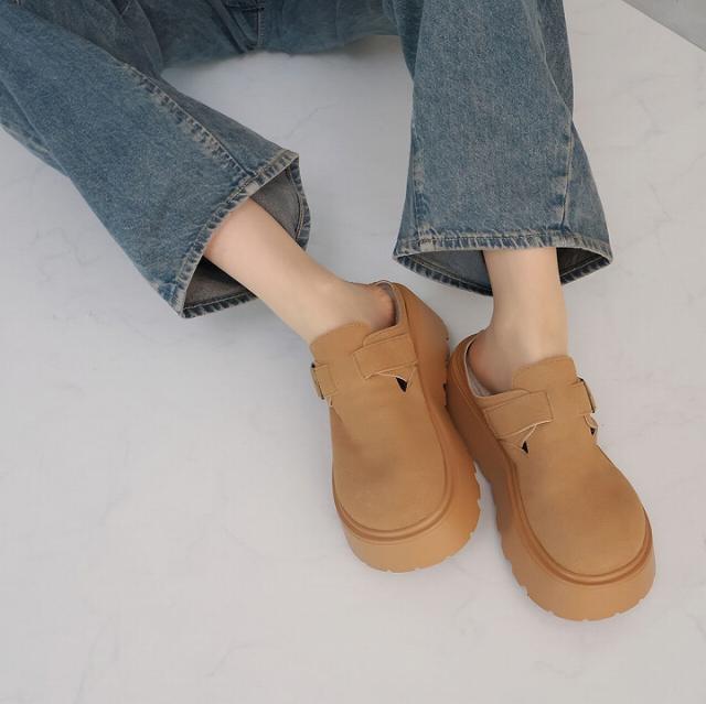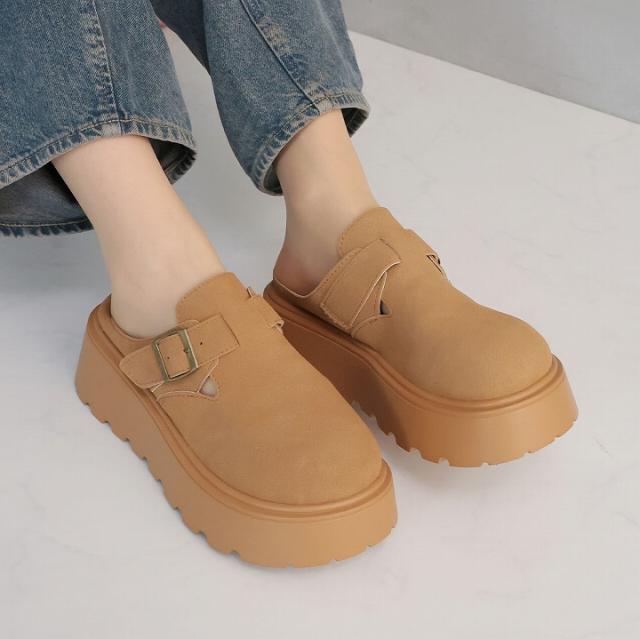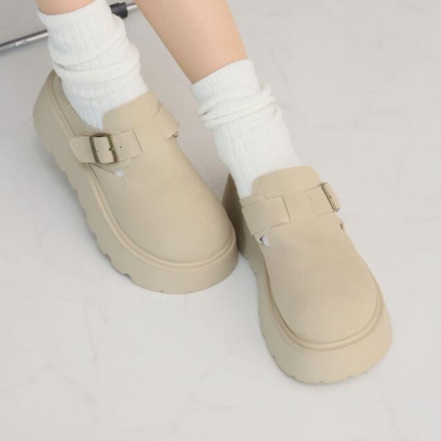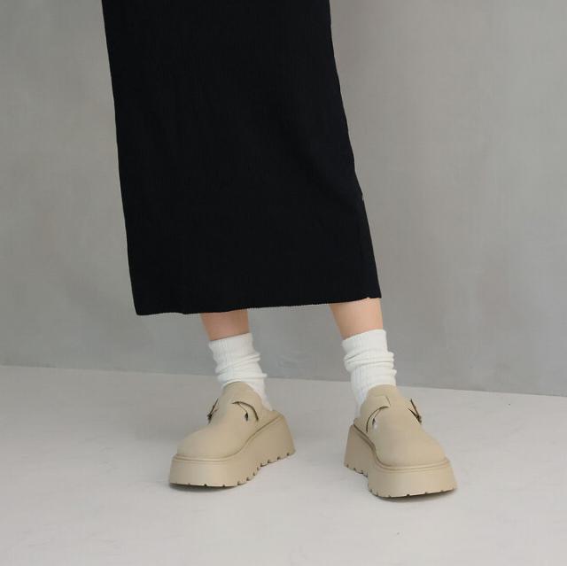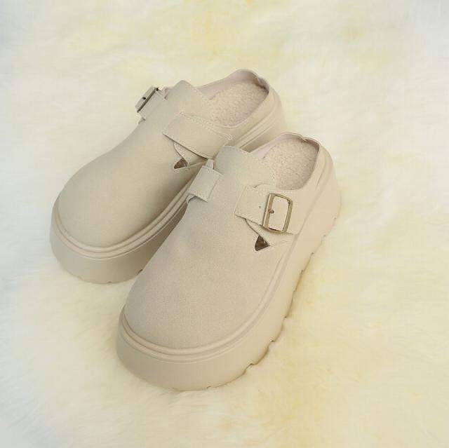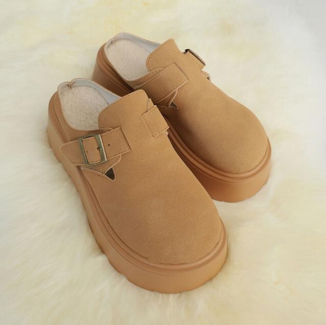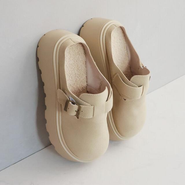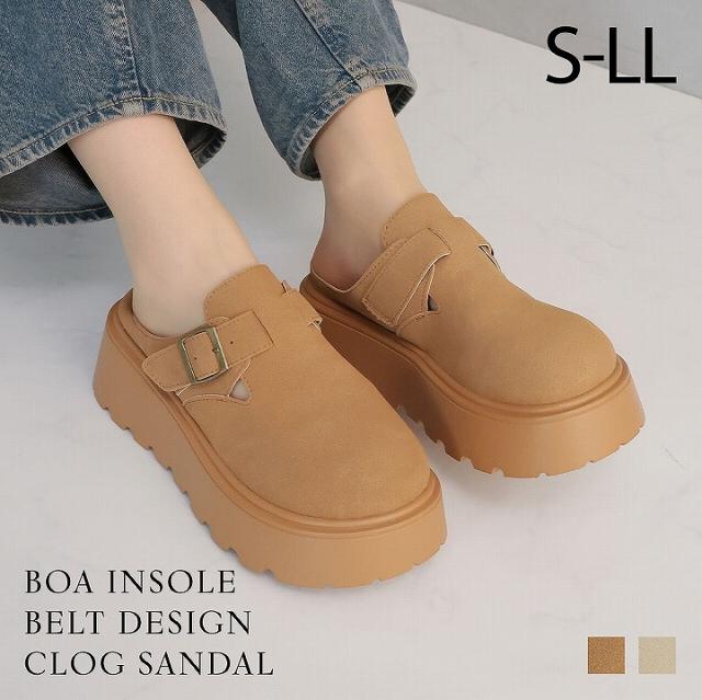 もこもこボア中敷き厚底ベルトデザインサボサンダル