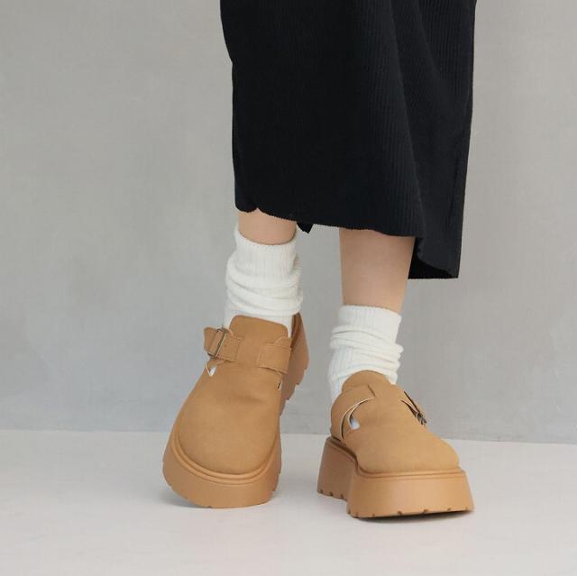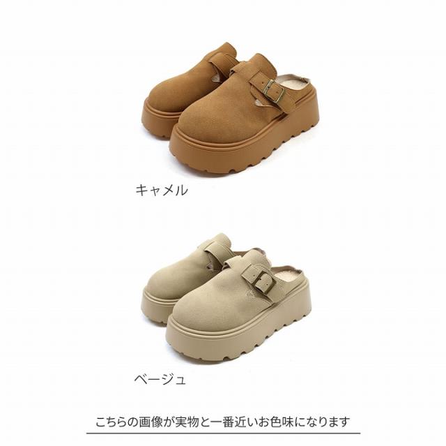 ・もこもこボア中敷きであったかカワイイ厚底サボサンダル!