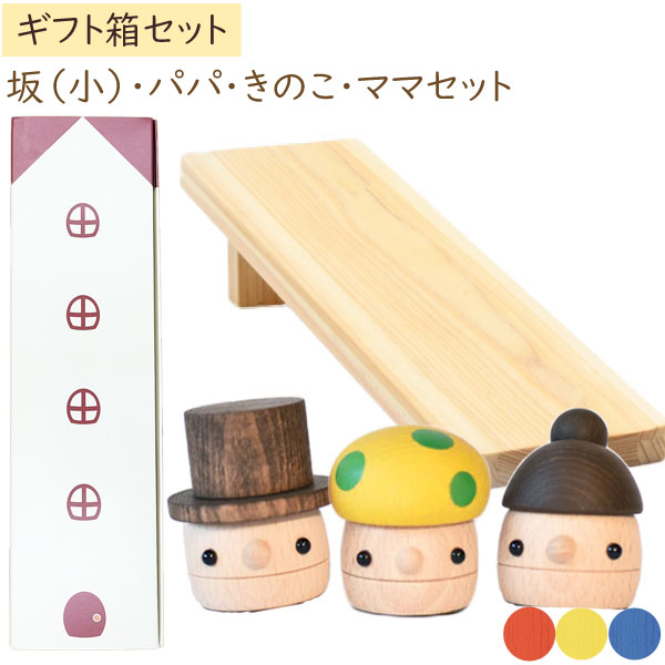 木製おもちゃ ギフトBOX パパ・ママ・きのこ+どんぐり坂(小)セット 日本製【こまむぐ】【ラッピング袋プレゼント!】【送料無料】