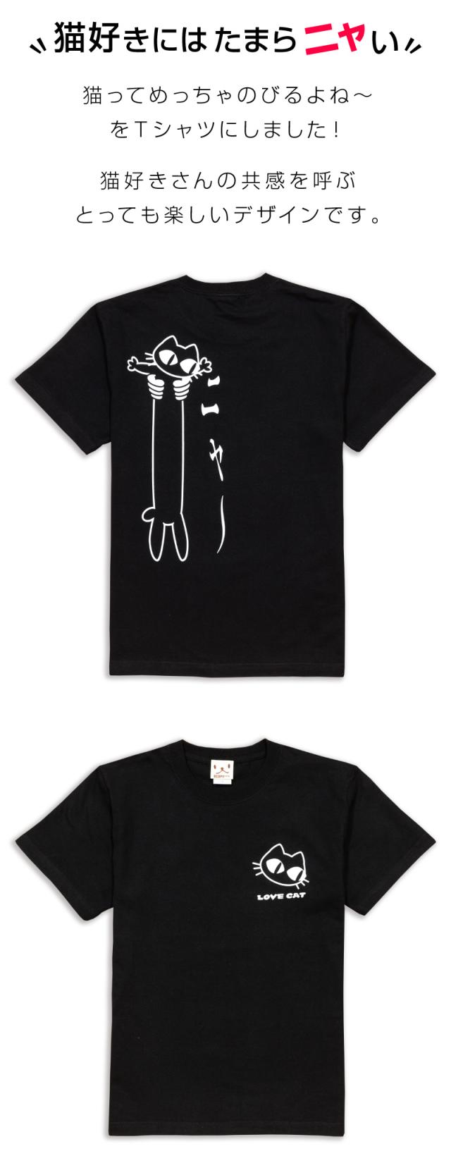 | ■ LOVE CAT (ブラック) 猫を持ち上げた時にのび〜〜〜る体がメチャメチャ面白かったので、思わずこんなTシャツ作っちゃいました。 猫好きな人にはこの面白さ分かってもらえる? | |||