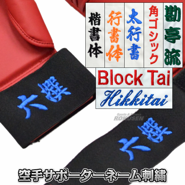 空手 空手サポーター・バッグネーム刺繍 1文字 楷書体・行書体・太めの行書体・角ゴシック体・勘亭流・ブロック体・筆記体