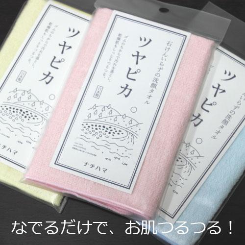 ナチハマ ツヤピカ 洗顔タオル 石けんいらず 全3色 ピンク/イエロー/ブルー エポクリン 日本製 メール便