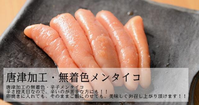 ◆唐津加工【無着色】辛子メンタイコ :アメリカ産/ロシア産スケソウダラ卵巣、食塩、発酵調味料、鰹節エキス、昆布エキス、米酢、唐辛子、ゆず胡椒、酵母エキス、調味料