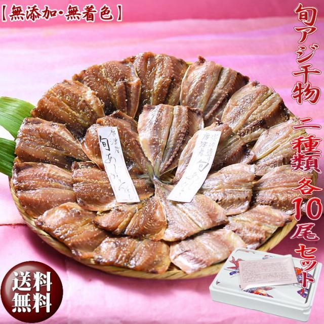 【敬老の日 ギフト】知っとこ紹介【無添加・無着色】唐津産 旬アジ開き(淡塩造り) 旬アジ醤油みりん干し 各10枚入セット 計20枚入り お試し特価で! 干物 ひもの ギフト セット プレゼント 酒の肴 カルシウム 敬老の日 プレゼント