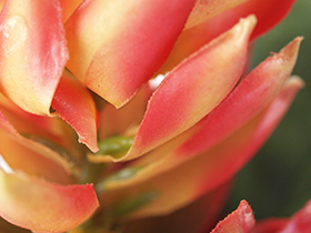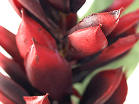 ショウガ科の多年草で、苞の中に白色の小さな花を咲かせます。花そのものは小花ですが、色付いた穂状の苞が美しいお花です。 種類によって白、赤、ピンク、オレンジなどさまざまで、甘い香りがすることも有名です。 バリでは、ホテルやスパの敷地内に植えられているのを見かけます。エキゾチックな雰囲気でリゾート気分を演出できます。
