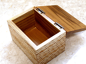 産地はインドネシア、タイ、ビルマなどの東南アジア。防水性、強度、耐久性にすぐれシロアリなどの害虫にも強く、湿気を吸うことによるひび割れや反りが出にくいため、家具材、彫刻材、船舶材、建築材などに用いられています。また、それらの特性に加えて、気品ある色調を持ち、世界の最高級材のひとつで、貴重な木材になっています。
