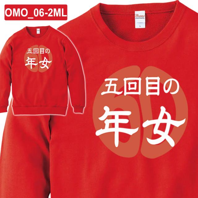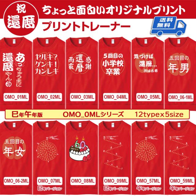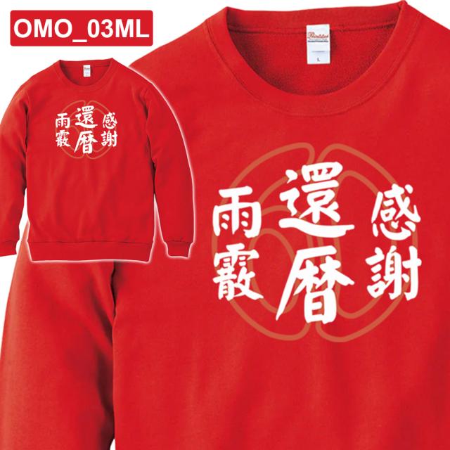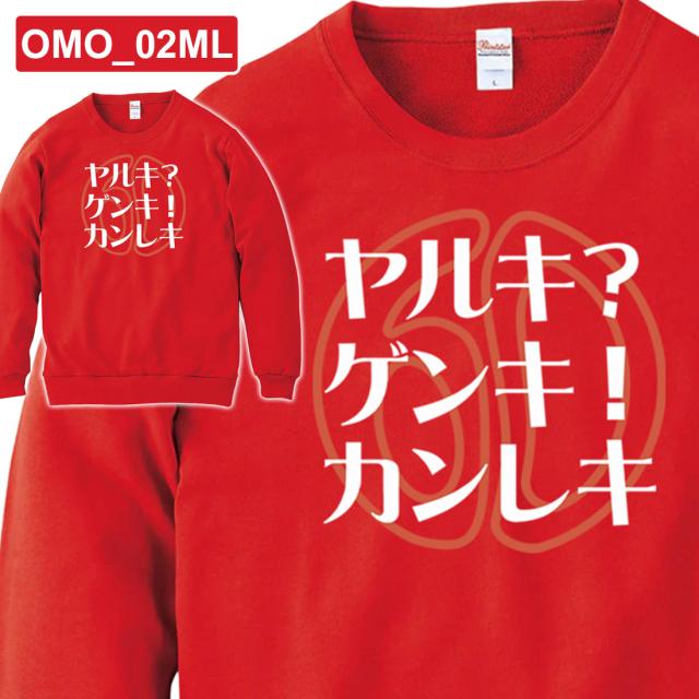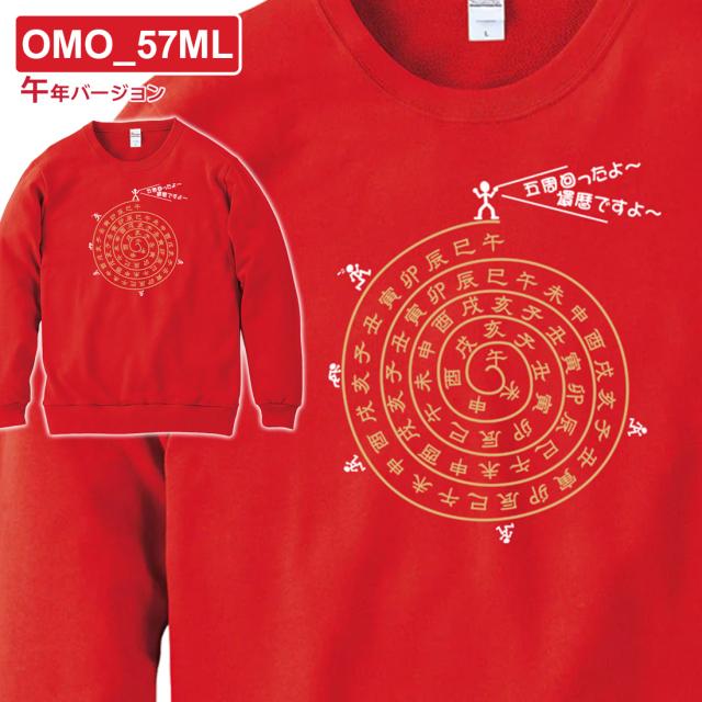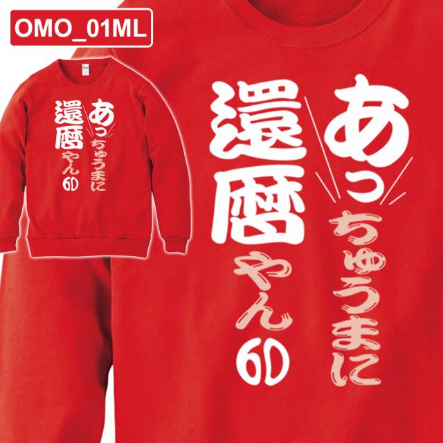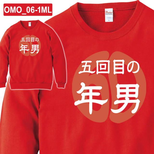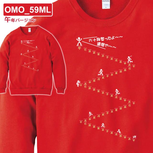 還暦 長袖 トレーナー OMO_0MLシリーズ 巳年 午年 対応版 還暦祝い おもしろい プリント お祝い プレゼント ラッピング 赤 レッド おしゃれ サプライズ メンズ レディース 男性 女性 父 母 上司 メール便 送料無料
