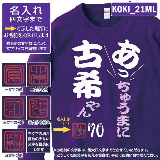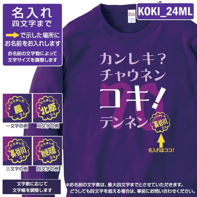 古希トレーナー KOKI_MLシリーズ 名入れ 古希 トレーナー 8.4オンス 古希祝い おもしろい プリント 70歳 お祝い プレゼント ラッピング 紫 パープル おしゃれ サプライズ メンズ レディース 男性 女性 父 母 上司 送料無料
