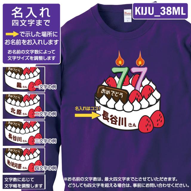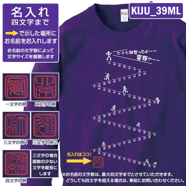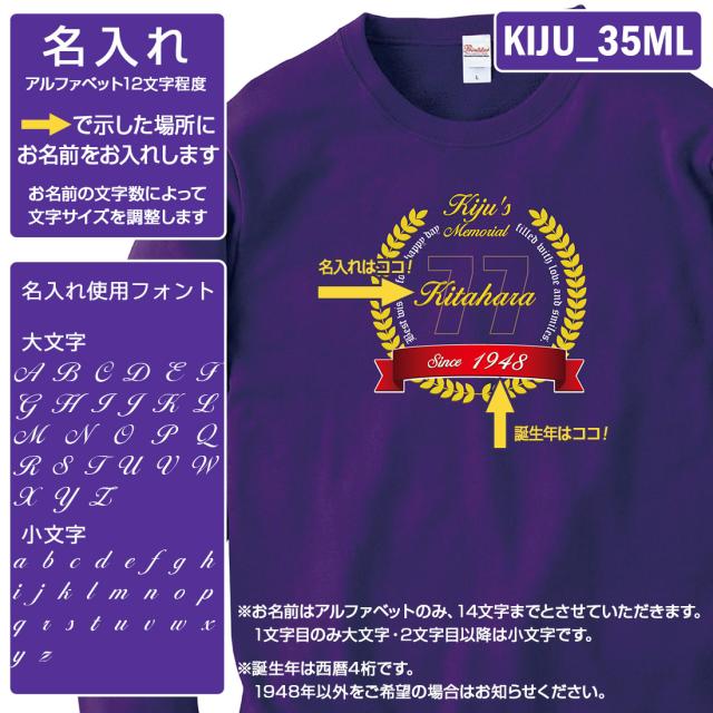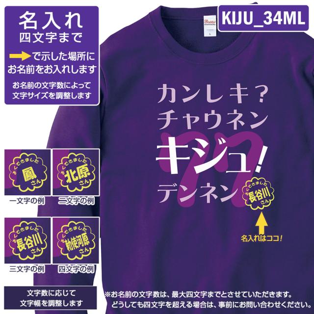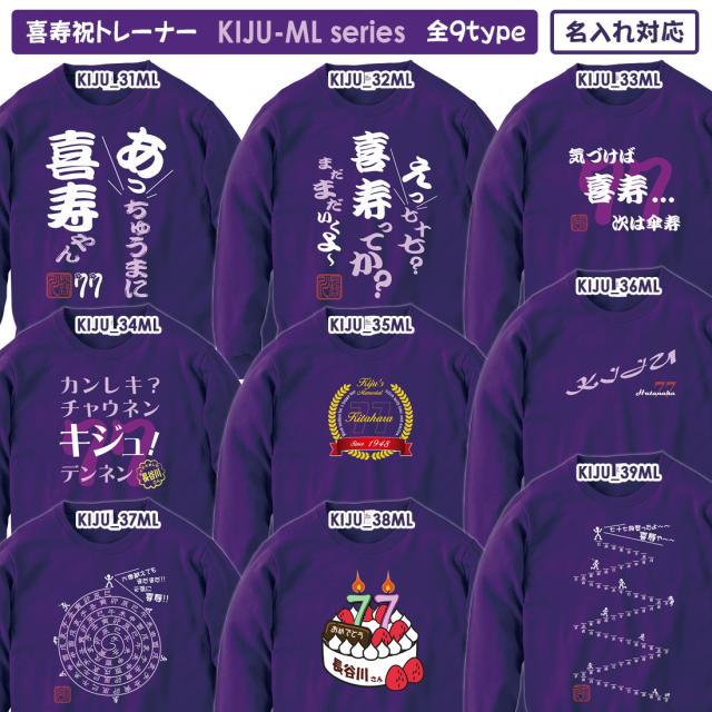 喜寿トレーナー KIJU_MLシリーズ 名入れ 喜寿 トレーナー 8.4オンス 喜寿祝い おもしろい プリント 77歳 お祝い プレゼント ラッピング 紫 パープル おしゃれ サプライズ メンズ レディース 男性 女性 父 母 上司 送料無料