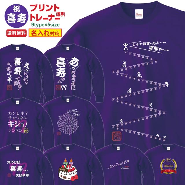 喜寿トレーナー KIJU_NSシリーズ 名入れ 喜寿 トレーナー (厚手) 9.7オンス 喜寿祝い おもしろい プリント 77歳 お祝い プレゼント ラッピング 紫 パープル おしゃれ サプライズ メンズ レディース 男性 女性 父 母 上司 送料無料