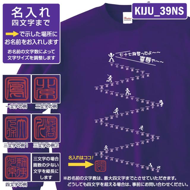 プリント 名入れ Tシャツ DTFプリント 長袖 喜寿 お祝い プレゼント Sサイズ Mサイズ Lサイズ XLサイズ 2XLサイズ 送料無料 メール便