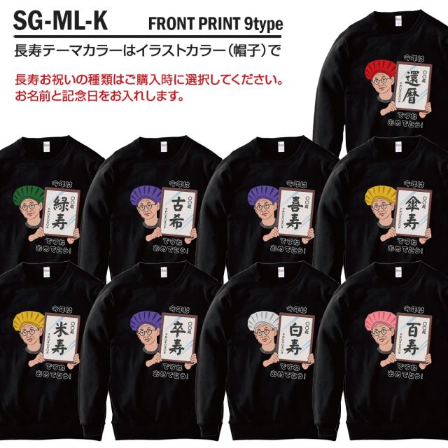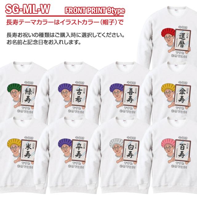 還暦祝 長寿祝 トレーナー SG-MLシリーズ 名入れ 還暦 緑寿 古希 喜寿 傘寿 米寿 卒寿 白寿 百寿 シンプル プリント 60歳 66歳 70歳 77歳 80歳 88歳 90歳 99歳 100歳 お祝い プレゼント ラッピング メンズ レディース 男性 女性 父 母 上司 メール便 送料無料