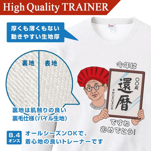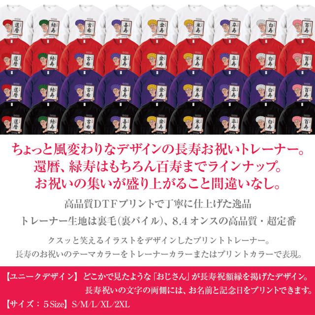 長寿のお祝いや記念のプレゼントなどに、おもしろデザインのプリントトレーナーを!