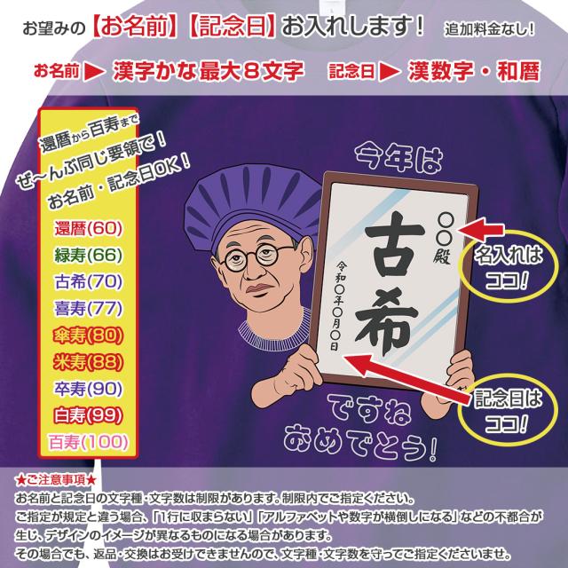 還暦祝いTシャツ、長寿祝Tシャツ、その他各種、販売しています。