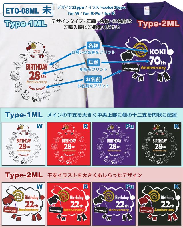 誕生日 長寿 祝い 名入れ 長袖 トレーナー 8.4オンス 干支 シリーズ お祝い おしゃれ プリント プレゼント ラッピング ホワイト レッド パープル ブラック サプライズ メンズ レディース 男性 女性 父 母 上司 送料無料