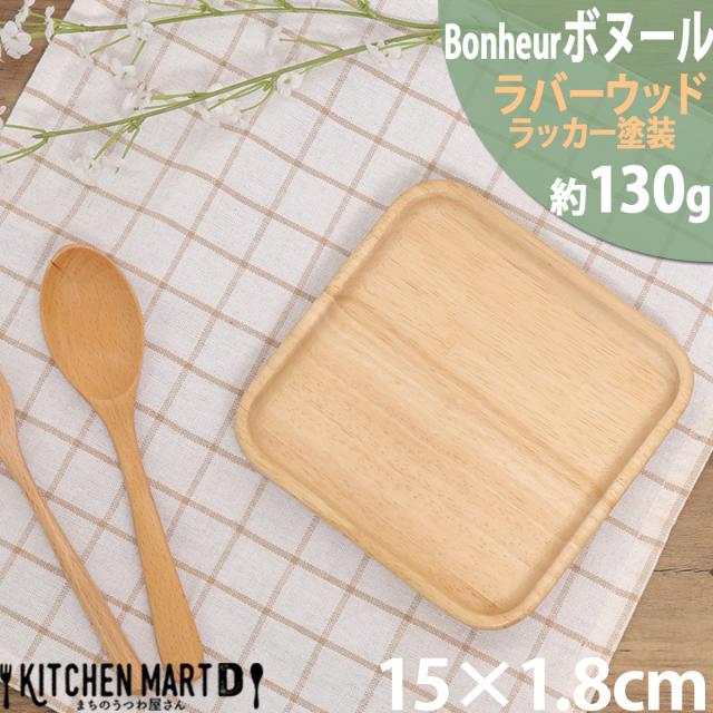ボヌール Bonheur 15cm 木製 木 スクエア 正角 プレート S 皿 取り皿 小皿 ウッド 天然木 カフェ ランチ wood plate 不二貿易 ウッドバーニング