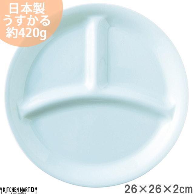 ランチプレート うすかる L ブルー 26×2cm 420g 軽い 軽量 美濃焼 日本製 仕切り ワンプレート 仕切り皿 国産 丸 丸い 丸型 食器 カフェ 陶器 おしゃれ 北欧 子供 ホームパーティー スタック 食洗機対応 あす楽対応 ラッピング不可