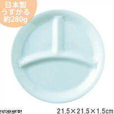 ランチプレート うすかる M 丸 ブルー 21.5×1.5cm 280g 軽い 軽量 美濃焼 日本製 ワンプレート 仕切り皿 仕切り 国産 丸い 丸型 食器 カフェ 陶器 おしゃれ 北欧 子供 ホームパーティー スタック 食洗機対応 あす楽対応 ラッピング不可