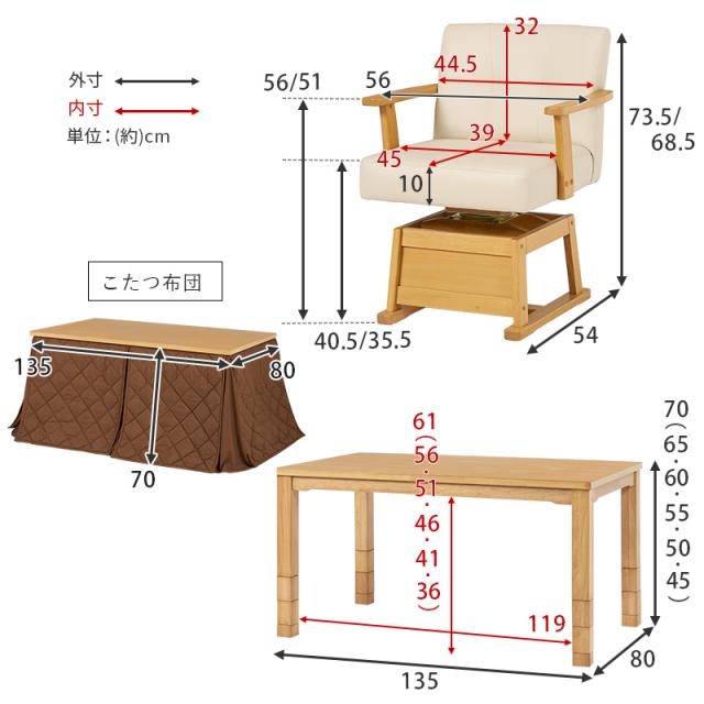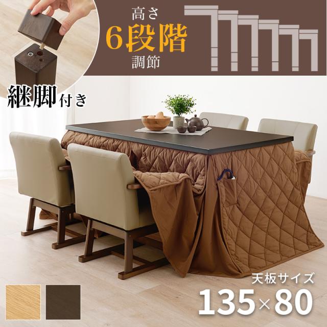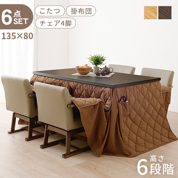 こたつ ハイタイプ セット こたつテーブル 135 ダイニングこたつ 高さ調節 こたつセット 長方形 コタツセット 6点 135×80 ミンカ+マロン 炬燵 コタツ ダイニングテーブル 掛け布団 4人用 6点セット