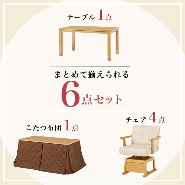 ダイニングこたつテーブル「ミンカ」の6点セット。