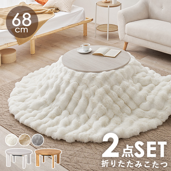 こたつ こたつセット 一人用 こたつテーブル おしゃれ こたつ布団 テーブル セット 洗える 丸型 コタツ 白 折りたたみ 木目調 韓国 姫系 かわいい モネ+ルナ 折りたたみテーブル 折り畳みテーブル 丸型 炬燵 2点セット 丸