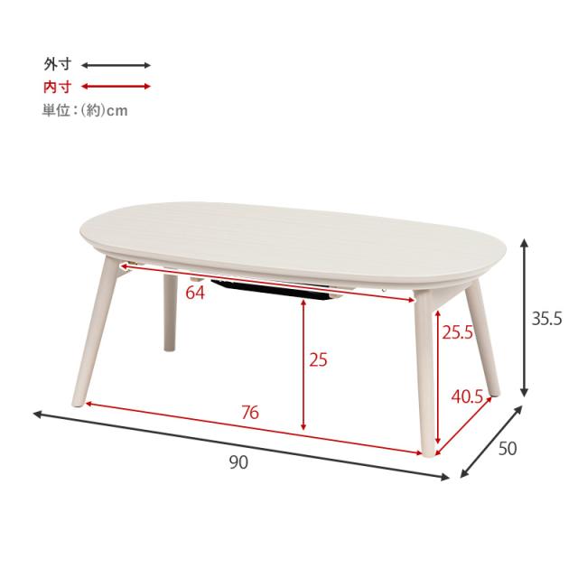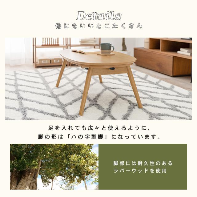 おしゃれな楕円形の 折りたたみ こたつテーブルです。