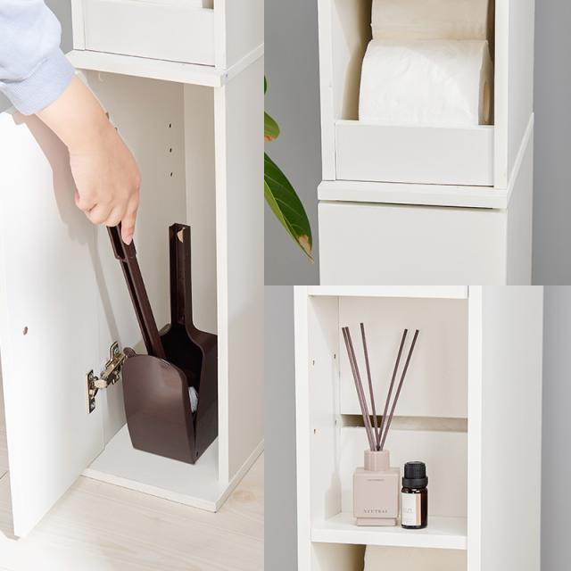 トイレットペーパーや掃除用品をたっぷり収納できます。