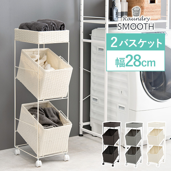 ランドリーバスケット 大容量 洗濯カゴ キャスター おしゃれ 洗濯かご ランドリーボックス ランドリーワゴン ランドリー収納 幅28cm スムース ランドリーバスケット 2段 洗濯 スリム キャスター カゴ