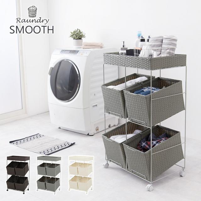 ランドリーバスケット 大容量 洗濯カゴ キャスター おしゃれ ランドリーラック ランドリー収納 ランドリーワゴン 大型 3段 幅56cm スムース ランドリーバスケット 大型 洗濯 スリム キャスター カゴ